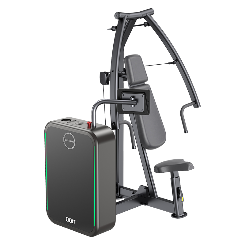DForce Chest Press is an intelligent motorized resistance machine designed for precise, safe, and eective chest training. Using an advanced motor, it delivers accurate, smooth, and fully controllable resistance, replicating the classic seated chest press motion. It eectively targets the pectoralis major, anterior deltoids, and triceps, making it ideal for shaping the chest, enhancing upper-body pushing strength, and improving posture.