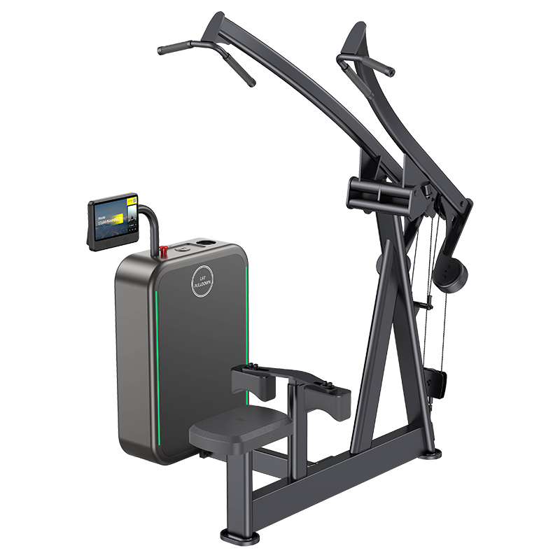 an intelligent motorized resistance machine engineered for targeted back development. Using an advanced motor to deliver precise, smooth, and fully controllable resistance, it simulates the classic high-pulldown movement to effectively strengthen the latissimus dorsi, teres major, rhomboids, and other upper-back muscles, while also engaging the biceps and core muscles. This makes it an excellent choice for building a V-shaped physique, improving posture, and enhancing upper-body pulling strength—particularly suitable for fitness enthusiasts and rehabilitation users who demand the highest levels of safety and accuracy