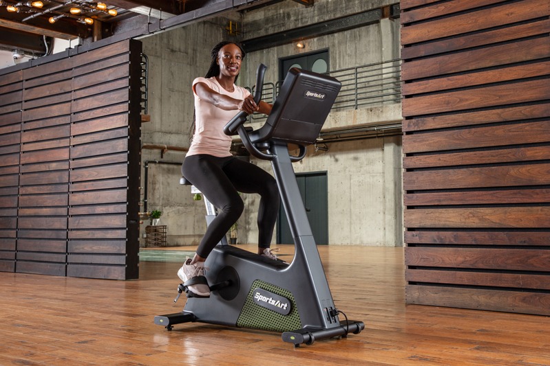 SportsArt ECO-POWR™ line is the embodiment of design, technology, sustainability, and cardiovascular excellence. The sleek angles and practical features combine with state of the art energy generating technology to produce an engaging workout users can feel good about. The G574U Upright Cycle features a low-profile shroud design for ease-of-access, vertically and horizontally adjustable seat, and fingertip resistance controls.